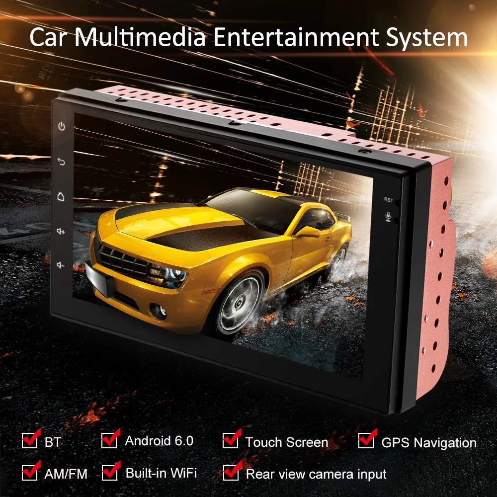 Universal 7'' Smart Android 6.0 2 Din Car Stereo Radio Player GPS Navigator Multimedia Entertainment with BT WIFI AM/FM Free Map